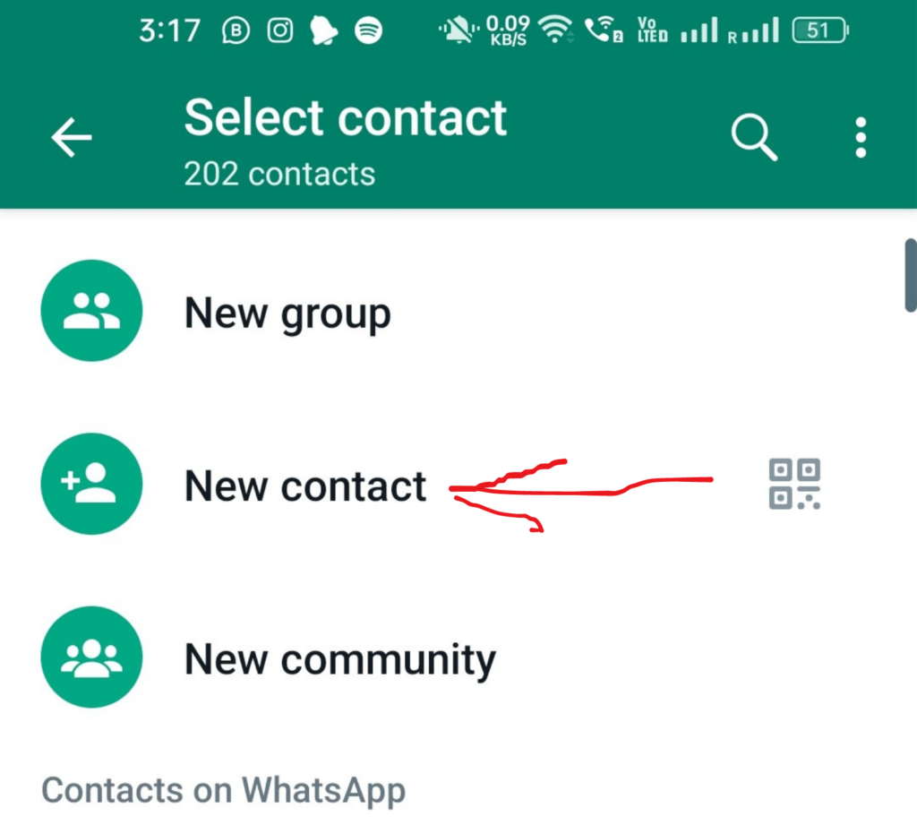Next step is to Click on new contact option that is visible on the next screen. You will see the image option like that :-